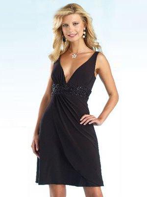 This classic Black v neck sleeveless dress is crafted from chiffon, emblished above the knee and suitable for formal functions.